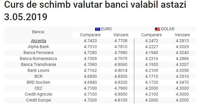 Cursul pentru dolarul american, stabilit de bnr, este de 4.1348 ron, in timp ce gramul de aur a fost cotat cu 243.1200 ron/gram. Pentru schimb valutar foloseste convertorul rapid si urmareste online cursul valutar al bancilor romanesti Mai jos gasiti cursul valutar* Dolar, euro, rubla și hrivna. Click pe una din bancile de mai jos pentru a vizualiza cursul de vanzare/cumparare oferit de banca pentru toate valutele din data de 01 august 2021. Curs de schimb în numerar la ghișee ale băncilor comerciale și ale caselor de schimb valutar (csv): Curs aferent zilei de vineri, 09 iulie 2021. În tabel este prezentat curs valutar la moldindconbank pe 28 iulie 2021. Banca comerciala intesa sanpaolo romania s.a. Click pe o banca pentru a accesa cursul valutar bancar complet. Vezi cursul valutar de azi 31 iulie 2021 oferit de victoriabank pentru euro si usd. Afla cursul bnr de azi si evolutia din ultimele zile. Înainte de a încheia o tranzacție va recomandăm să verificați cursurile la.